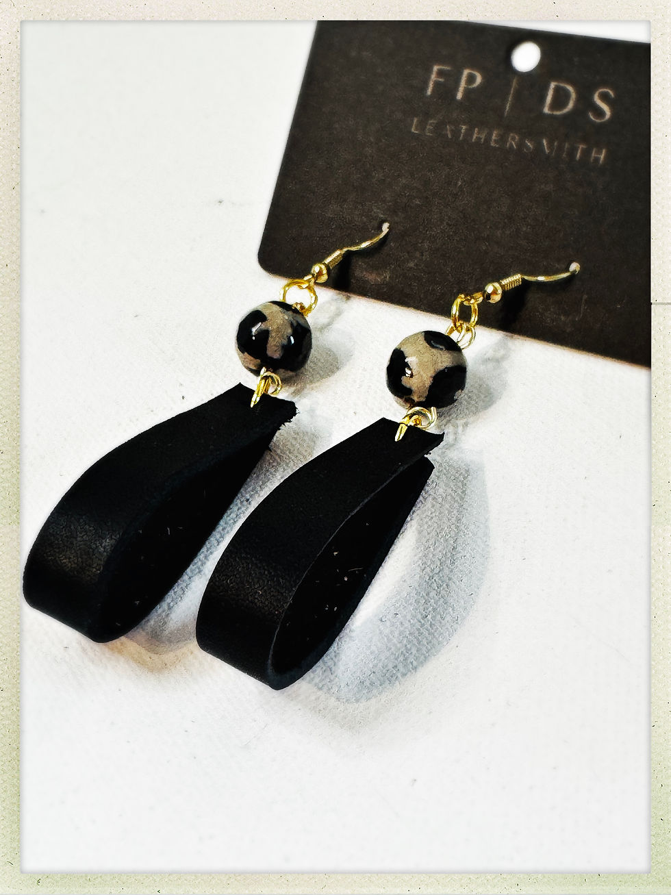 The JENNA :: dark brown leather knot and black and white beads